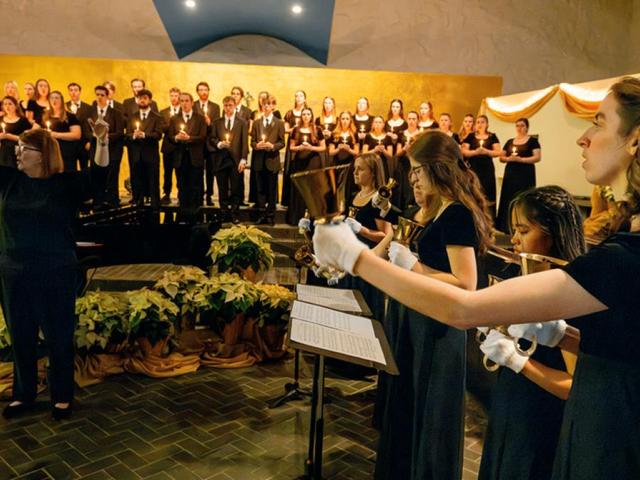 One of the school's and community's most cherished annual events is Christmas at Mary. The concert, featuring a variety of choral and instrumental ensembles, is performed in Our Lady of Annunciation Chapel on the University of Mary campus. The historic and iconic Marcel Breuer-design chapel opened in 1959 and has been the home for this concert ever since its founding – pleasing generations upon generations of music lovers.