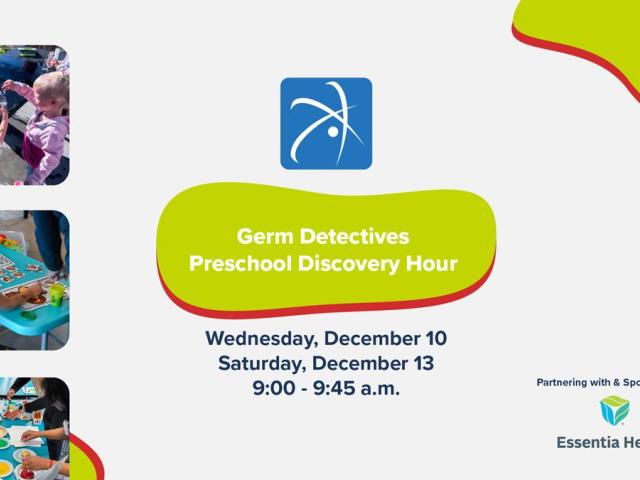 We're teaming up with Essentia Health to explore the hidden world of germs for December's Preschool Discovery Hour! Join us for hands-on activities that help little learners understand how germs spread, what they might look like, and how to keep themselves healthy.