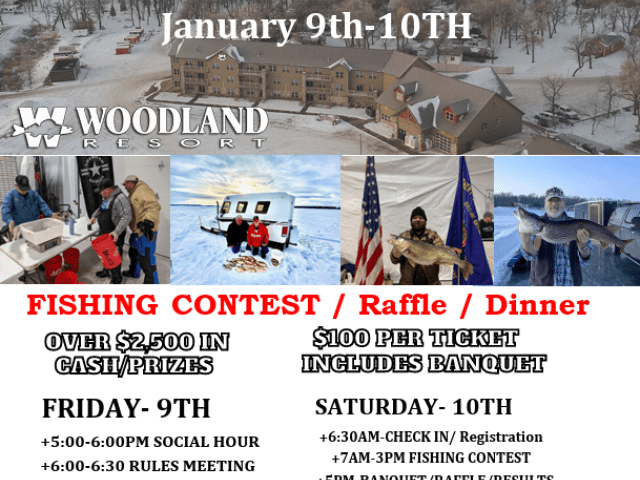 Tournament hours on Saturday, January 10th are 7:00 am 3:00 pm, followed by banquet at 5:00 pm. Contestants will check-in, stage and depart from the landing at Woodland Resort beginning at 6:30am.