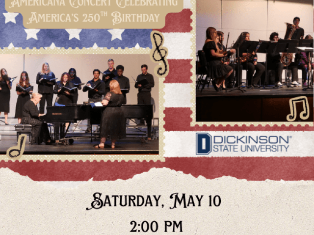 Join us for an Americana-themed concert celebrating the 250th birthday of our nation, featuring the Dickinson State University Band and Choir!