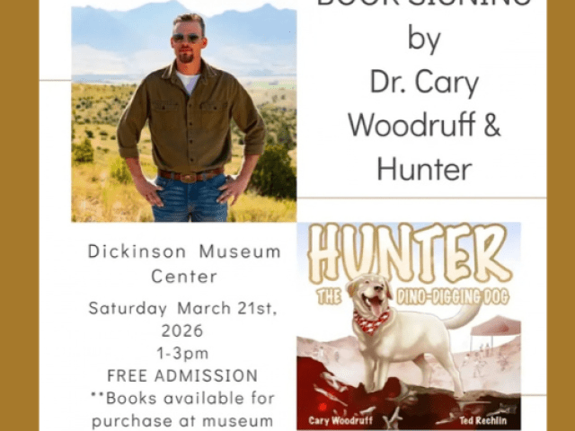 Do you have a little dinosaur lover or book lover in your household? Head to the Dickinson Museum Center's Gift Shop to purchase a copy of "Hunter, the Dino-Digging Dog" now. Go back to get it autographed by the author and Hunter, the dog, on Saturday, March 21st between 1 - 3 PM MT at the Dickinson Museum Center.