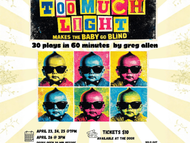 Too Much Light Makes the Baby Go Blind Presented by the Blue Hawk Theatre Guild The Blue Hawk Theatre Guild at Dickinson State University proudly presents Too Much Light Makes the Baby Go Blind by Greg Allen — an electrifying night of theatre unlike anything you’ve experienced before. Location: Backstage Theater, Dorothy Stickney May Hall