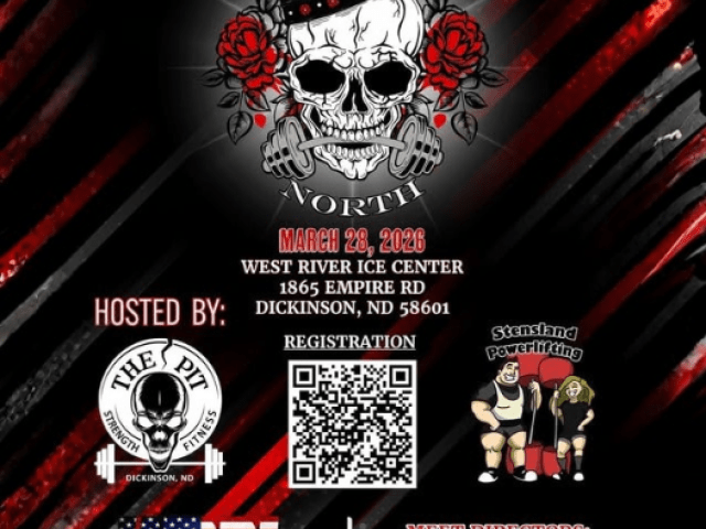 KING OF THE NORTH VI – Powerlifting Competition is back for 2026. Head to the West River Ice Center in Dickinson on March 28 to see 120 lifters use two platforms. Cash prizes will be awarded to the strongest lifters.