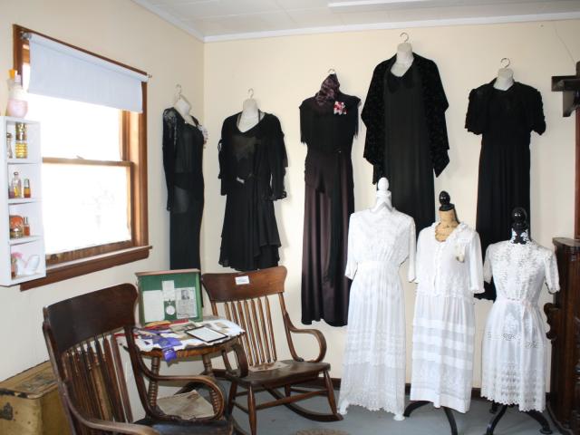 Lake County Historical Society operates the Pioneer Village in Kenmare, ND. This is a 27-building museum/village that entices one to spend hours going through it. One visitor described it as: The Smithsonian of NW North Dakota. The original Norma Town Hall displays a collection of Vintage quilts dating back to the early 1900’s, a doctor’s one-horse buggy, a collection of Indian Stones from the area, spinning wheels dating back 120 plus years, Dr. Gammel's list of babies delivered at the Kenmare Hospital, and much more. Another highlight is Anne’s Dress Shop with vintage dresses, wedding dresses into the late 1800’s (including a wedding dress from four generations). You can touch mink, fox, and weasel stoles, most of which have eyes, noses, and ears still on them. This dress shop is extensive, with swimsuits from the 1920s, flapper dresses from the roaring twenties, etc.