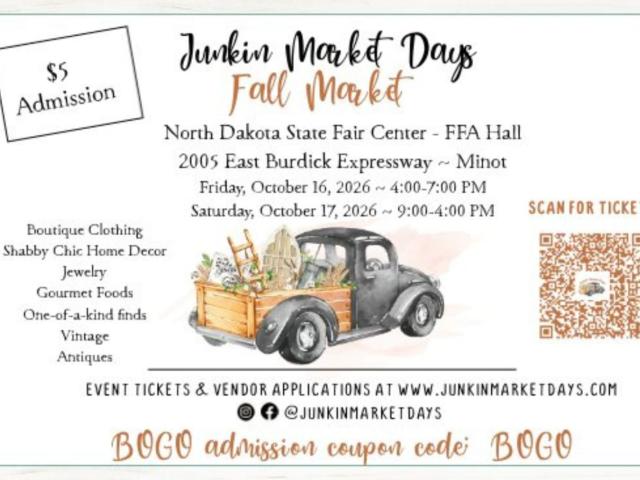 The event is held at the ND State Fair Center – FFA Hall in Minot on Friday, Oct 16 from 4-7pm & Saturday, Oct 17 from 9-4 pm.