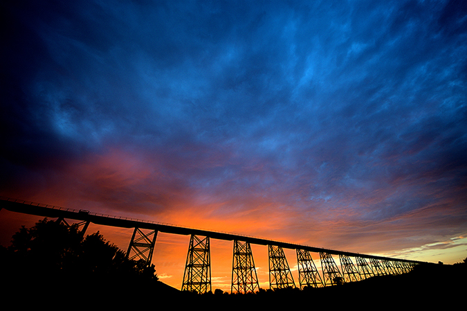 The steel beams of the Gassman Coulee Trestle Bridge burst from the prairie just west of Minot. Initially built with wood and rebuilt with steel in 1898 - this railroad bridge is a must-see for railroad enthusiasts.