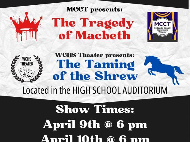 The first annual McKenzie County Shakespeare Festival is a joint venture between McKenzie County Community Theatre & Watford City High School.